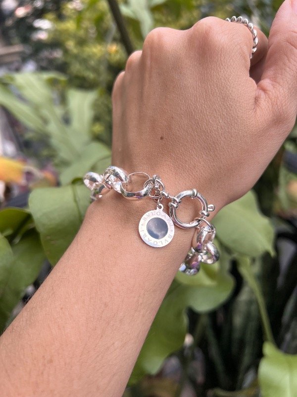 Pulsera rolo de acero blanco con cierre marinero y dije